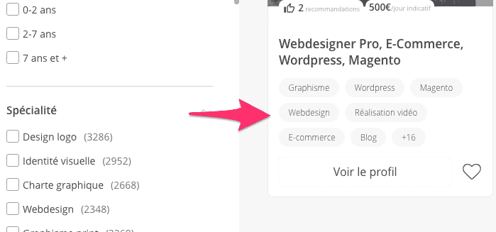 - Une spécialisation par profession : Consultant en médias sociaux, Thérapeute…
